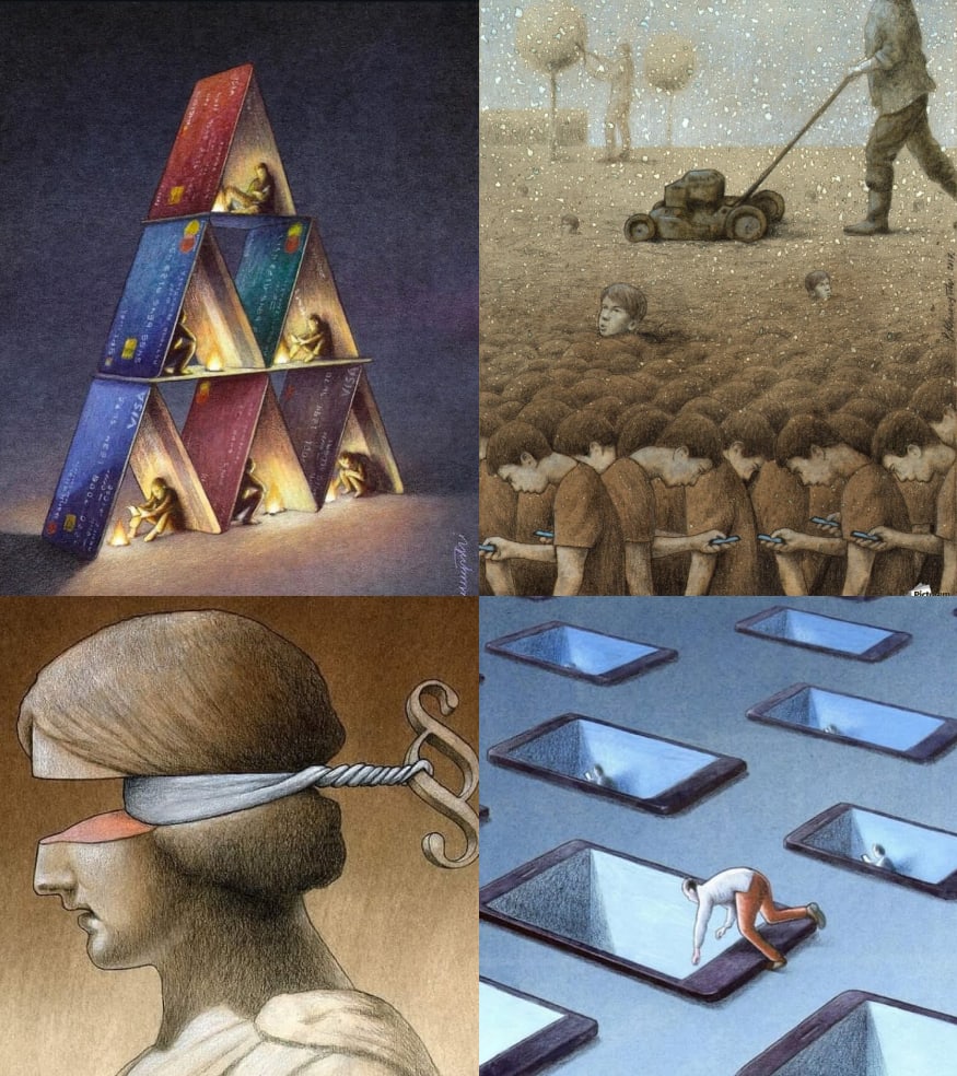 Pawel Kuczynski is a renowned Polish artist best known for his thought-provoking satirical illustrations that offer piercing commentary on modern society, politics and human nature.