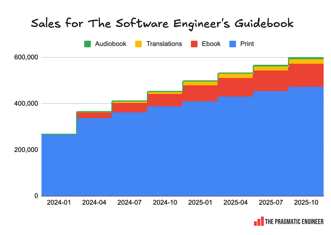 Hi – this is Gergely with the monthly, free issue of the Pragmatic Engineer Newsletter. In every issue, I cover challenges at Big Tech and startups through the lens of senior engineers and engineering leaders. If you’ve been forwarded this email, you can subscribe here. The Software Engineer’s Guidebook: a recapReflections on publishing The Software Engineer’s Guidebook two years ago, which has sold around 40,000 copies. Also: an unexpected trip to Mongolia to visit the startup which translated itBefore we start: I’ll be in San Francisco on 11 Feb, 2026. I’m working on something special for engineers and engineering leaders. I can’t wait to share more. 11 February – save the date! Two years ago almost to the day, I published The Software Engineer’s Guidebook. Originally, it came out in paperback, then as an ebook and an audiobook. I’m happy to share that it is now available as a hardcover, and is also on the O’Reilly platform.